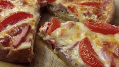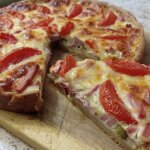 Спасибо за рецепт! Пирог очень вкусный, простой в приготовлении. Черри не было, поэтому у моего пирога всего 1 простая помидорка. 😁