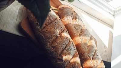 - Через 15 мин сделать на батонах небольшие надрезы острым ножом и поставить в заранее разогретую духовку.