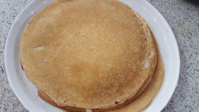 - Когда тесто покроется пузырьками, осторожно снять лопаткой и перевернуть.