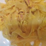 - Вытащить чеснок и выключить плиту. Положить макароны в сковороду и добавить сырно-яичную смесь и все размешать.