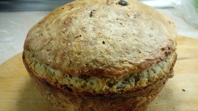 - Испечь хлеб, в тесто можно добавить тмин, кориандр, сухофрукты, нарезанные кусочками.
