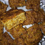 - Прямоугольную формочку смазать маслом и постелить бумагу. Положить тесто. Готовить 60 минут в духовке, соблюдая температуру 170 градусов. Не вынимая из формы, дать печенью остыть, после этого положить его на стол и порезать на квадратики.