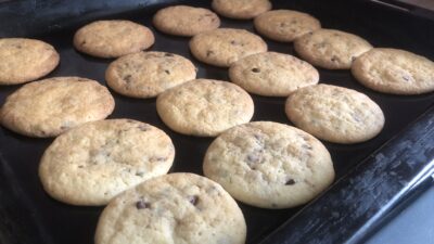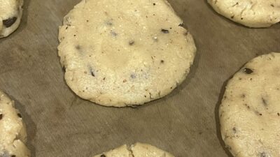 - Выложить печенье на застеленный пергаментом противень и выпекать печенье с шоколадом 10-15 минут при температуре 200°C.