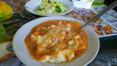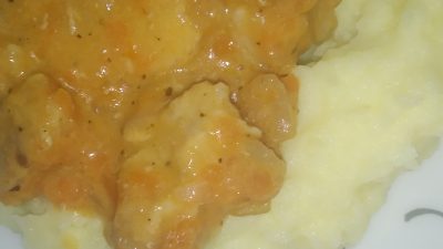 Гуляш из говядины с пюре и подливой