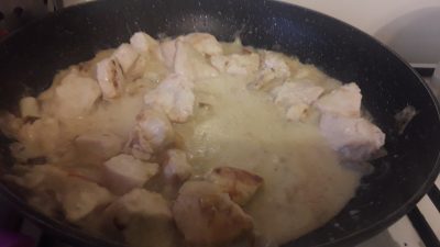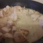 - Нарезать кубиками сырую куриную грудку. Очистить и вымыть репчатый лук, нарезать кубиками. Разогреть на сковороде растительное масло, выложить филе, посыпать специями, посолить и обжарить в течение пяти минут. Добавить измельченный лук, тушить еще пять минут. В сковороду влить сметану, массу перемешать и прогревать блюдо из курицы еще 10 минут, под крышкой.