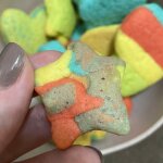 За рецепт спасибо, но мне показался немного не доработанным. Решили с дочкой напечь красоты, сначала сделали первую партию четко по рецепту, получилось жидковато и цвет ну такоесебе конечно(на фото со звездочкой видно цвет, добавили кусочек этого теста для разноцветия в остальное), муки добавляли еще пока не станет нужной консистенции. в итоге по вкусу как-то горчат, думаю из за смородины( в итоге тк дочка всеже ждала красоты из печенек добавили пищевых красителей и убрали смородину из рецепта совсем, в итоге в по муке все сошлось (какбудто в счет смородины жидкой забыли приплюсовать муки в рецепт) в итоге получилось все вкусно и красиво, но конечно хотелось еще и более полезно на натуральном, ну да ладно, будем искать чтото еще)