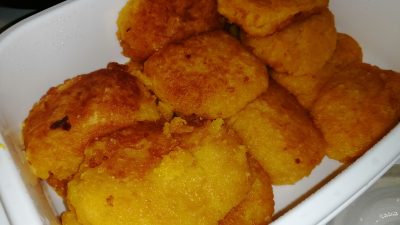 - Сформовать котлеты, запанировать в сухарях или в муке. Жарить с двух сторон.