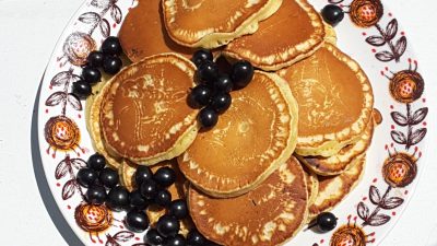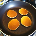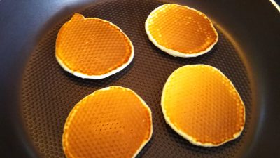 - Соединить сухую смесь с молочной также при помощи миксера. Сухую сковороду разогреть, налить тесто столовой ложкой, печь до появления пузырей. Перевернуть панкейки на молоке деревянной лопаткой, жарить с другой стороны до готовности. Вкусный завтрак готов!
