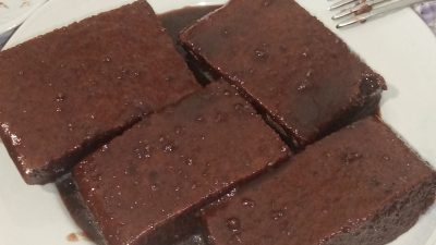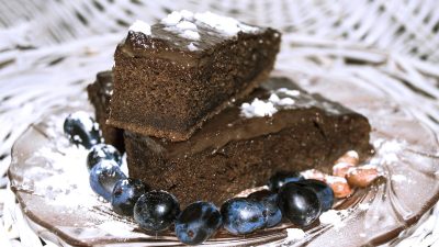 - Тесто вылить на заранее смазанный маслом противень. Время приготовления в духовке – полчаса, температура – 175 градусов. Готовый корж вынуть, немного остудить и полить оставшейся шоколадной смесью. Остудить шоколадные пирожные окончательно и подать к столу.
