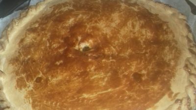 - Края защипать, наколоть тесто вилкой в нескольких местах. Время выпекания – полчаса, температура – 180 градусов.