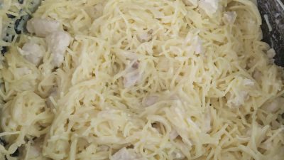 Спагетти с курицей в молочно-сырном соусе