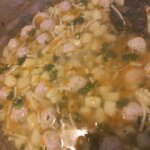 - Довести до кипения, посолить, поперчить, добавить лавровый лист. Опустить фрикадельки по одной в кипящий суп, варить чуть больше четверти часа. Всыпать вермишель, проварить сытный суп с фрикадельками из фарша еще 5-7 минут, всыпать мелко нашинкованную петрушку, отключить нагрев.